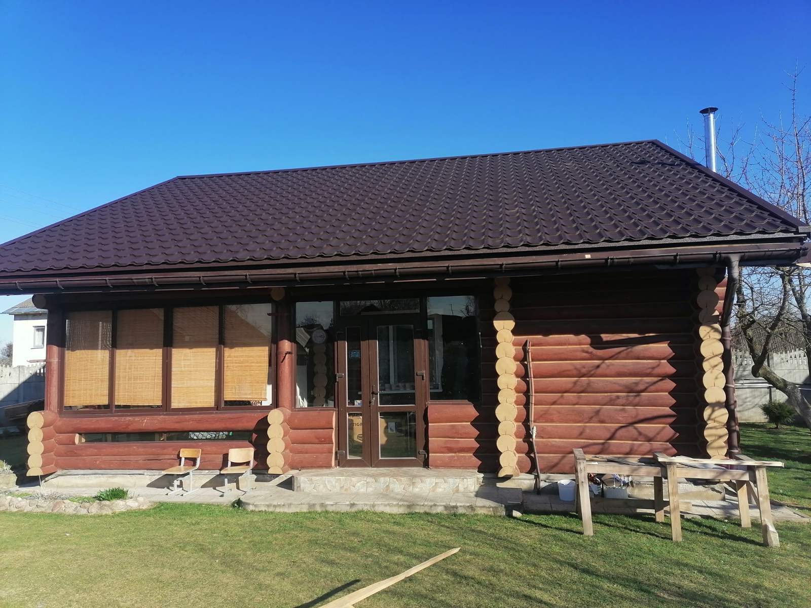 Монтаж двухскатной кровли с выносом стропил с террасой д. Чуденичи.В качестве кровельного покрытия использовалась металлочерепица, монтаж балок перекрытия, установка водосточной системы.