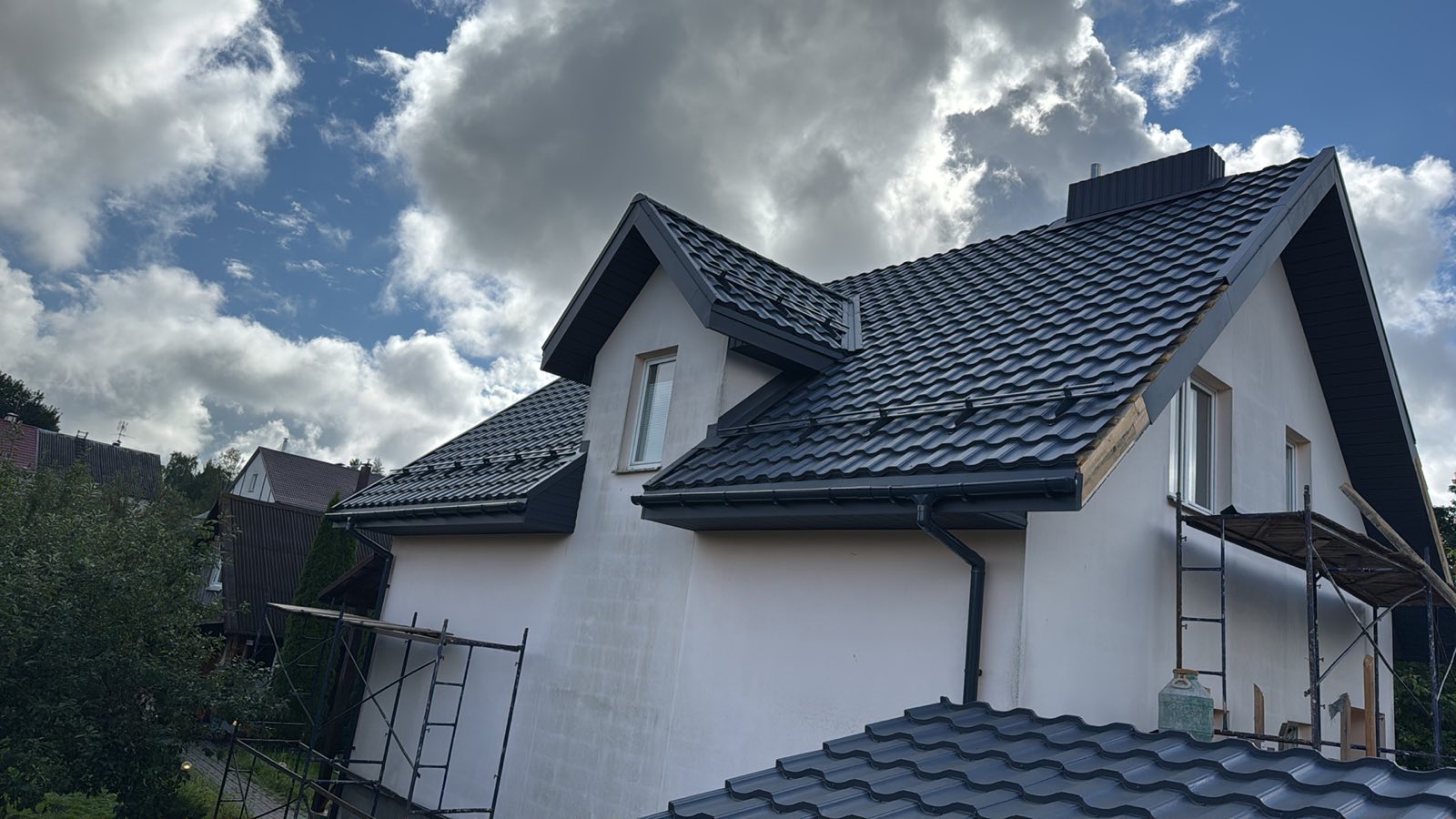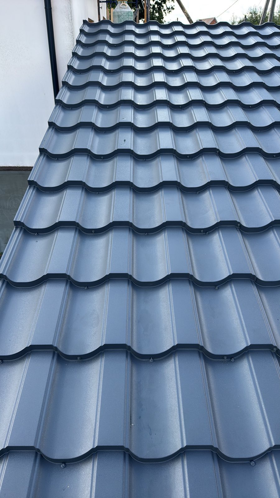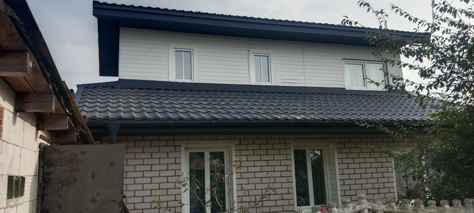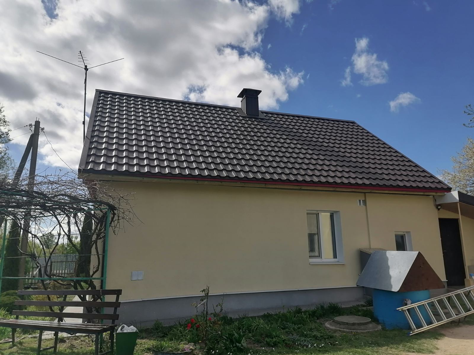Данный объект был реализован нашими мастерами в Агрогородок Колодищи. Произведена: выравнивание плоскостей, монтаж новой обрешетки, укладка металлочерепицы,подшивка свесов Металлическими софитами, установка водосточной системы, обшивка дымохода.