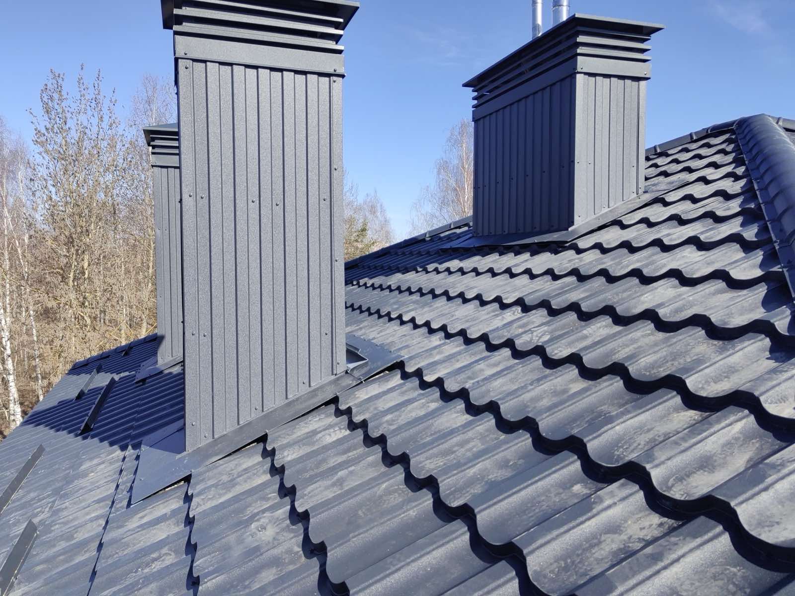 Данный объект был реализован нашими мастерами в г. Логойск. Произведена:выравнивание плоскостей, монтаж новой обрешетки, укладка металлочерепицы, установка снегозадержателей, обшивка дымохода.