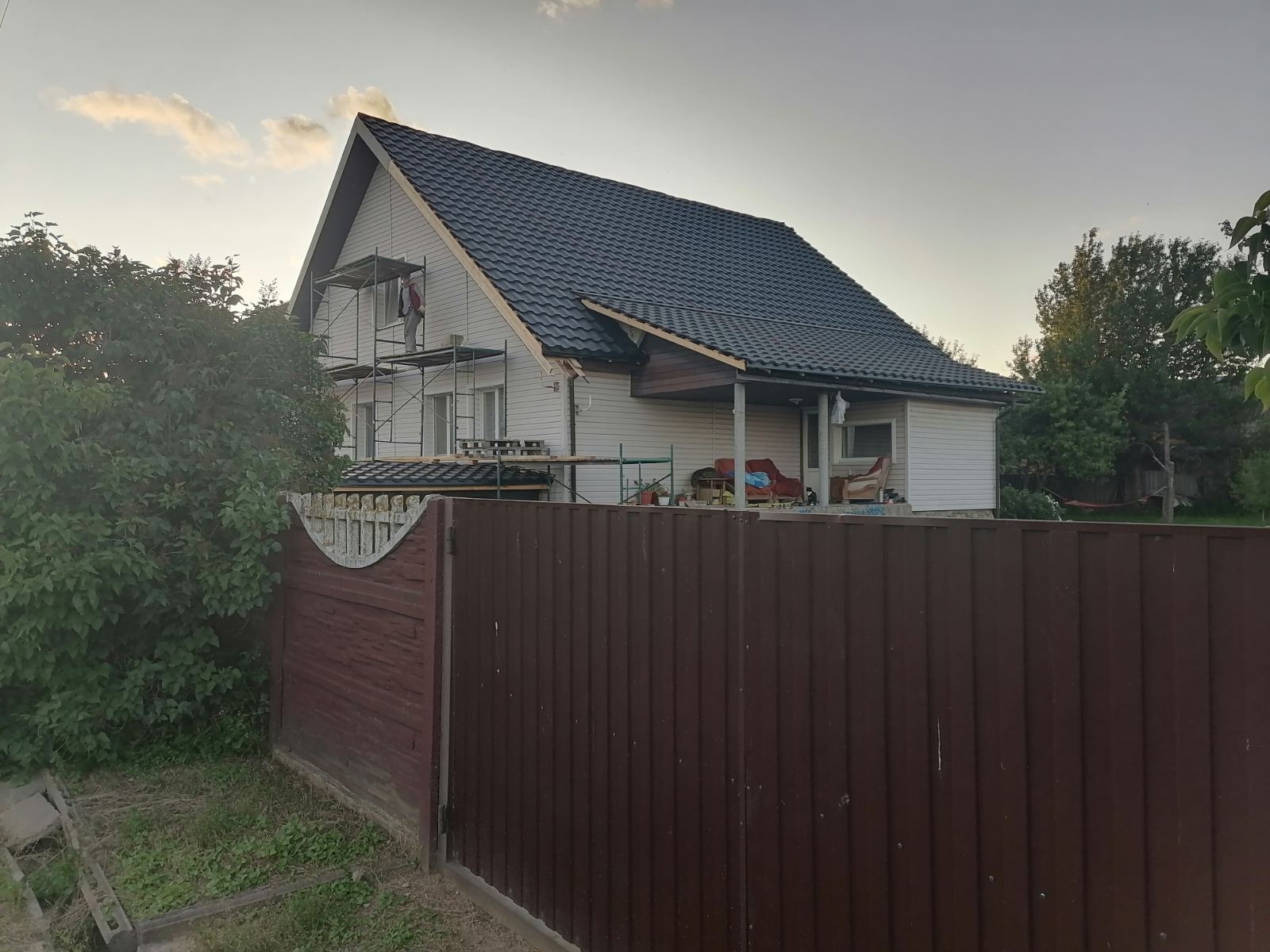 Данный объект был реализован нашими мастерами в д.Дубовцы . Произведена: переделка за не добросовестными строителями,выравнивание плоскостей с демонтажом обрешки, монтаж новой обрешетки,укладка металочерепицы