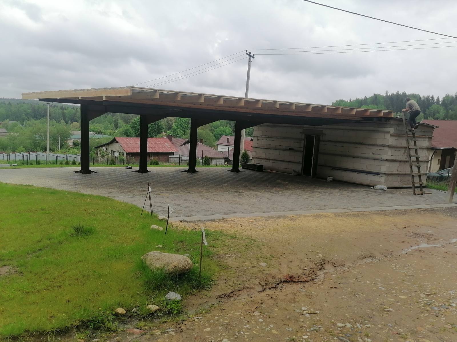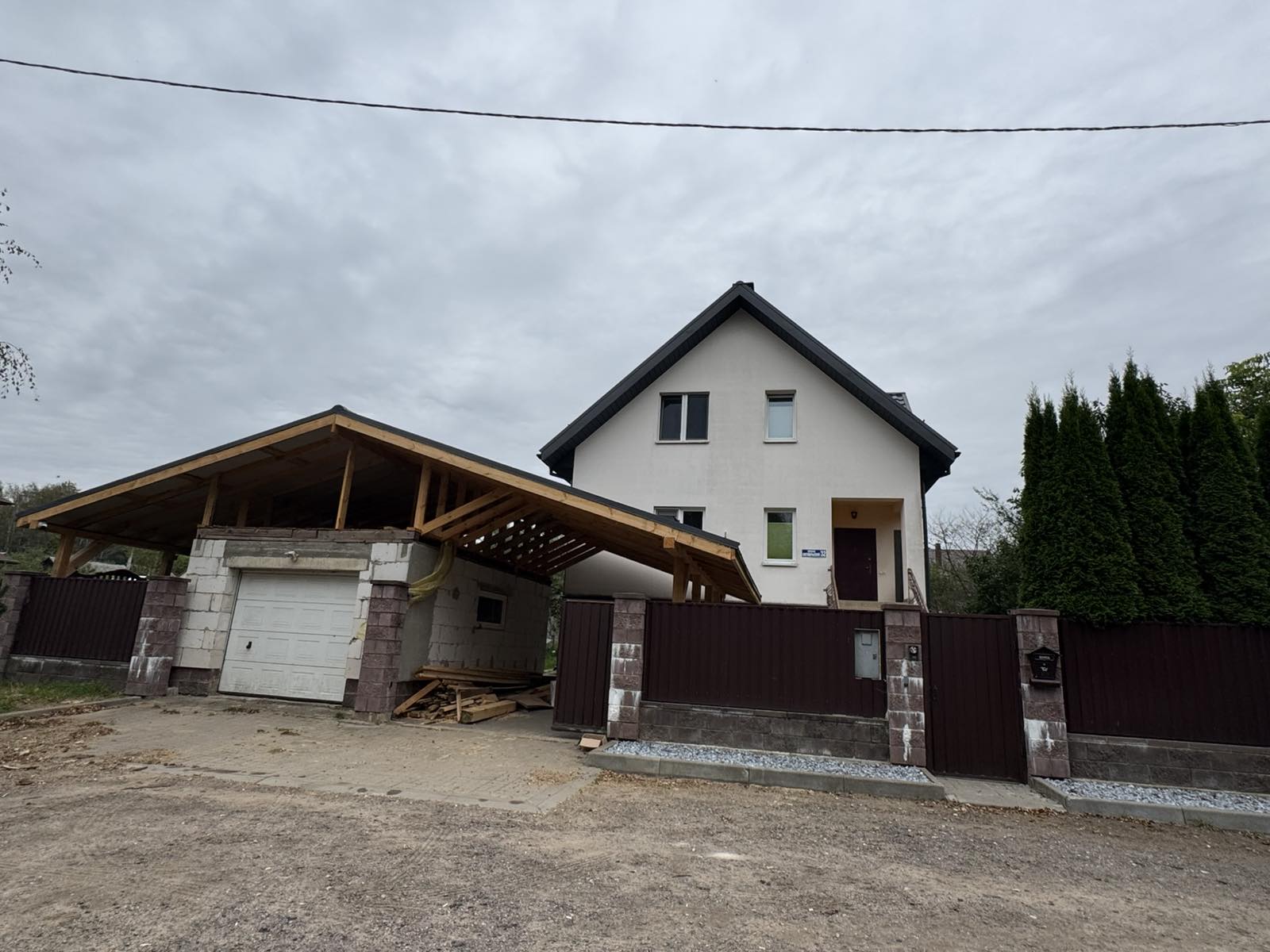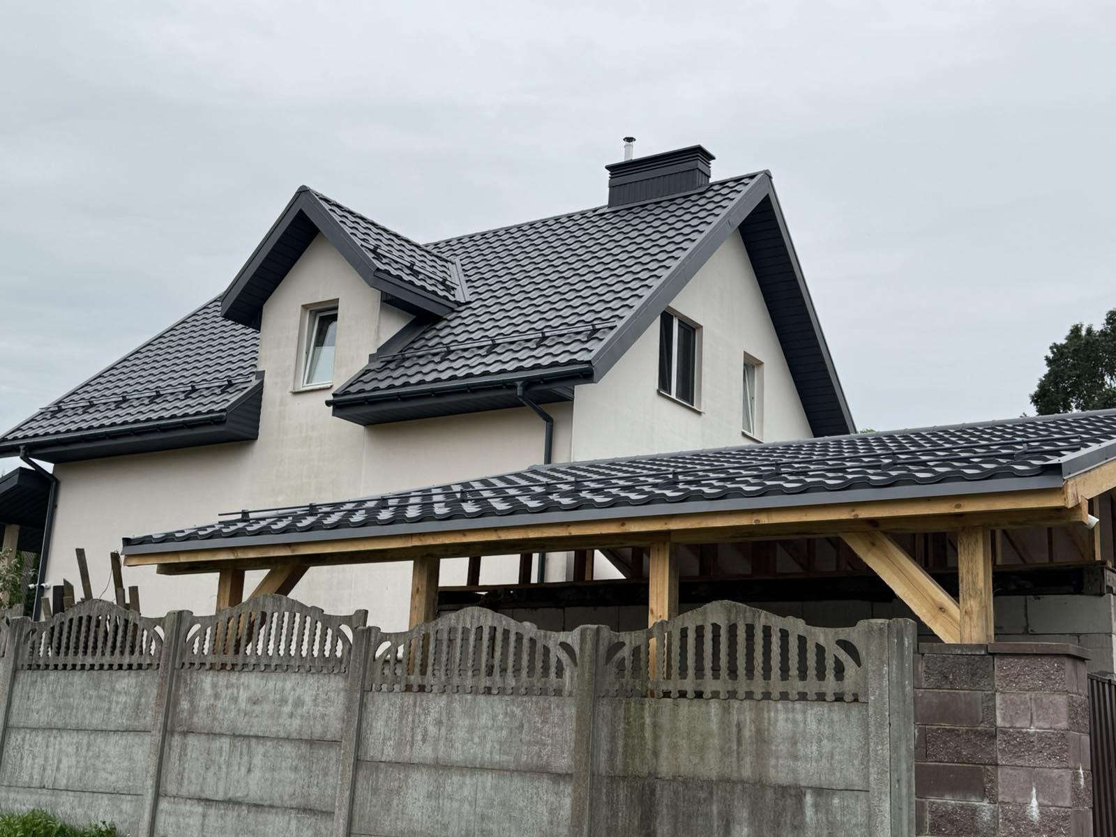 Данный объект был реализован нашими мастерами в д. Боровляны. Произведена: установка стропильной системы, гаража с навесом и террасы, установка столбов , выравнивание плоскостей, монтаж новой обрешетки, укладка модульной черепицы, подшивка свесов Металлическими софитами, установка водосточной системы, установка снегозадержателей, обшивка дымохода.
