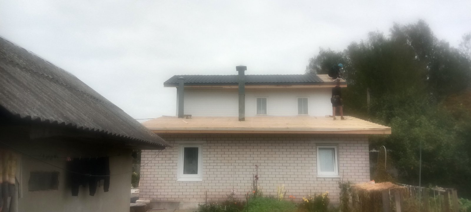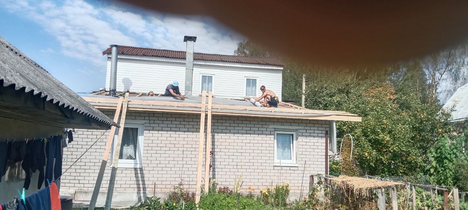 Данный объект был реализован нашими мастерами в д. Пасадец . Произведена:выравнивание плоскостей , монтаж новой обрешетки,укладка металлочерепицы, обшивка дымоходов, к сожалению нету фото финиша.